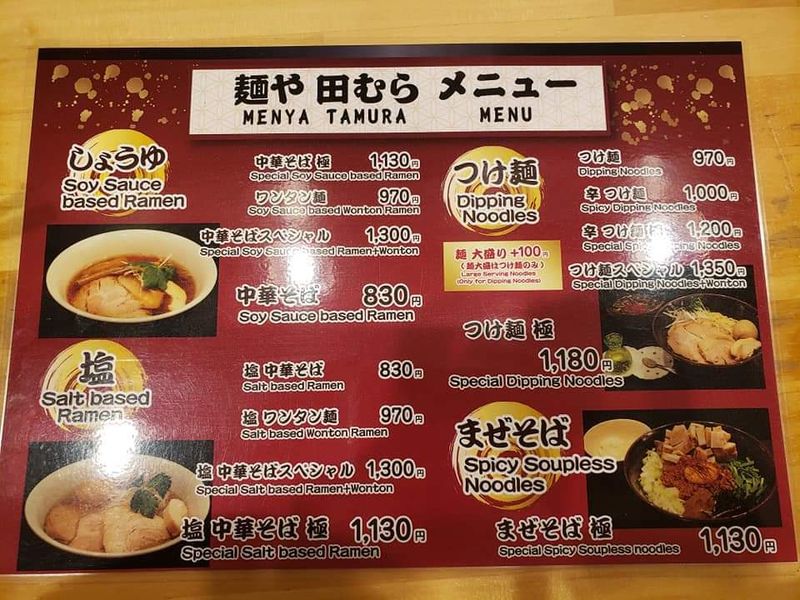 There are a host of different ramen joints close to Yokota Air Base, but one of the best is Menya Tamura. The specialty here is shio ramen, but they also have tsukemen and spicy soupless noodles too. Menus are available in English, probably because of the high number of Americans that visit from the base.
