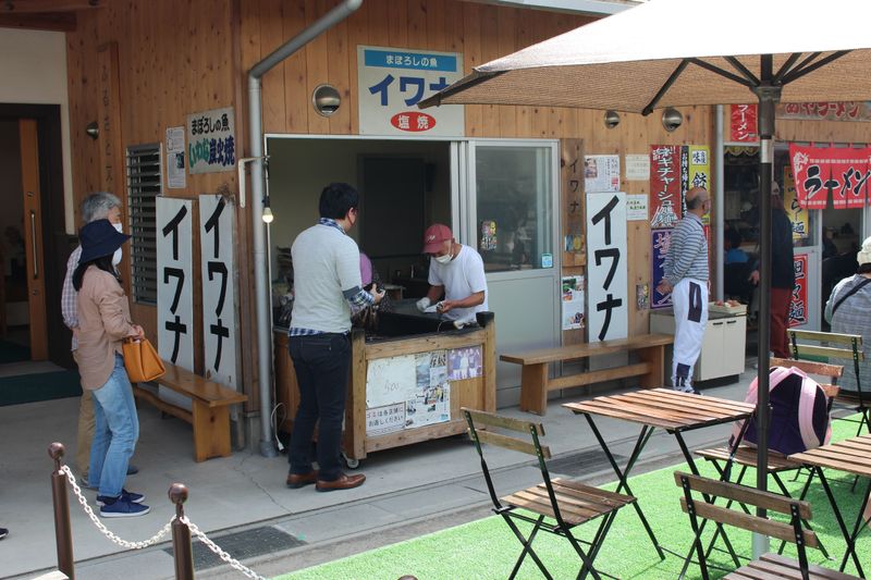 Iwanaya is located in a food court, of sorts, in the roadside station Washi no Sato. It is take out only, but there are chairs and tables in the courtyard that you can use. Its by far the most popular eatery in the resort. My son had it a few years ago and raved about it, so I tried it on my most recent visit (earlier this week). It really is very good, albeit a little pricey!