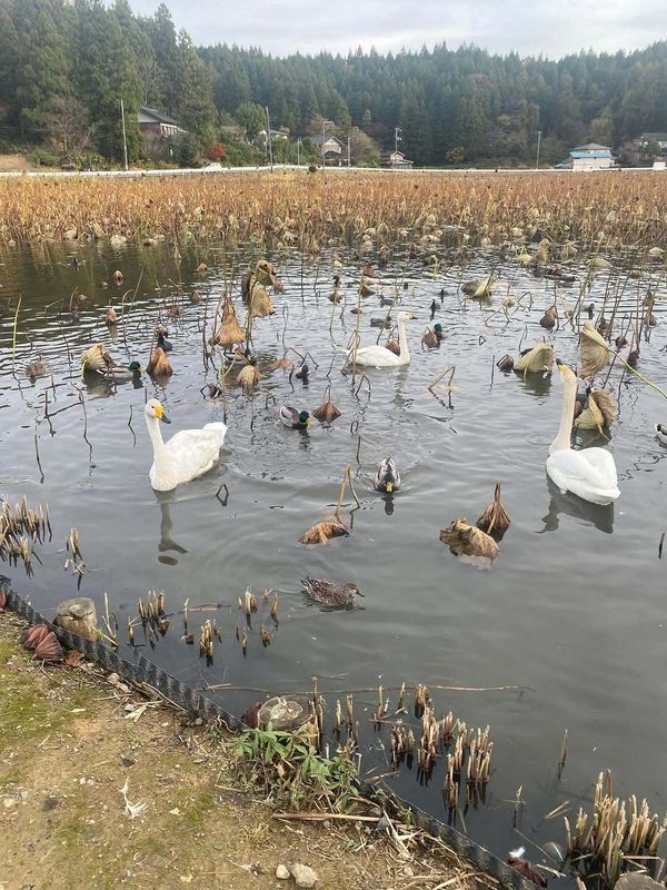 Nagamine Oike Pond is located in the Kashiwazaki area of Niigata, and it's a place where swans migrate in the winter (October-ish through March). If you have any interest in bird watching it's such a cool place to check out. There are walking paths around the pond so you really can get quite close to them!