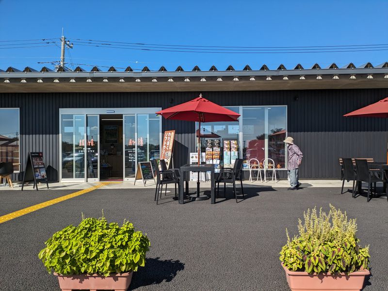 Sakitama Terrace is a new cafe cum shop at the famous Sakitama Ancient Burial Grounds. I'm not sure when it opened, but it wasn't there in November last year! It still looks brand spanking new. The shop side of it, which is what we used, sells local produce and souvenirs. You can get 'wataboku' ice-cream to take out. There are some nice tables out front, but I had to laugh today because most people were standing at the back of the shop to avoid the sunlight! Its a nice new addition to the park and the cafe menu will surely be appealing to many.