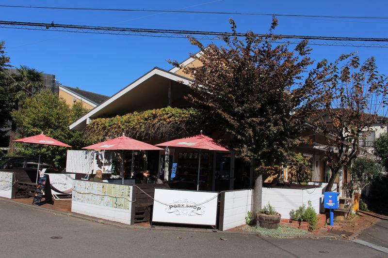 Johnson Town is a collection of shops and restaurants in American clapboard style housing that were once used as American Military housing when the area was part of the old American military Johnson base. There are a couple of places you can sit outdoors in Johnson Town, but the Pork Shop's outdoor area is the largest. It is also the most dilapidated! It looks nice from the outside with freshly painted fences, but up close you see the reality. Old, decaying wooden benches and tables. Inside is much nicer. The food is very popular, but I personally find it over priced. Parking is in the coin parking lot for Johnson Town. The restaurant is open from 11 am to 10 pm from Wednesday to Monday, closed on Tuesdays.