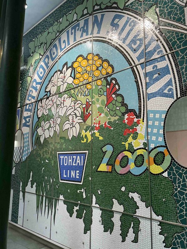 When you see the livery of the Tozai trains and the station architecture, you might wonder if you're in Tokyo. Myoden is one of a half-dozen Chiba-side Tozai line stations, part of the Tokyo Metro system. The Myoden neighbourhood looks like suburban Tokyo. It's got a historical Buddhist 33 temple pilgrimage route that starts at nearby Tokuganji Temple. The station opened in 2000, so it looks fresh. On the concourse before the ticket gates, look out for the tile murals commemorating the opening.