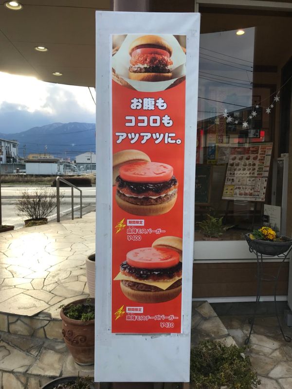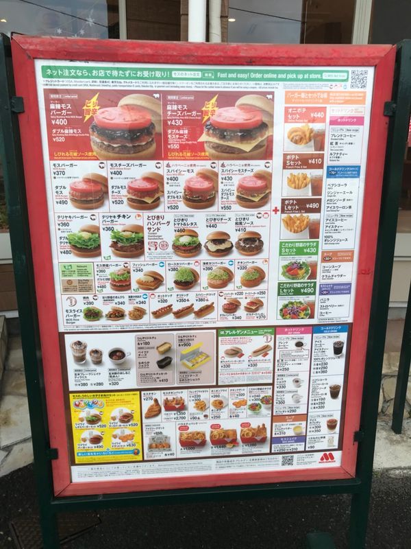 Mos Burger is definitely my go-to fast food joint. I'm not sure if it is because there are no locations in the States, but I am a big fan of their Chicken Burgers. The price of Mos Burger is a little more pricier than what I'm used to paying for a fast food burger, however sometimes it is just worth it. I haven't been to many locations in Japan, however this location has an adorable interior, making it appear more like a cafe than a fast food joint. They have some cute plants and photos that make the place more welcoming like a cafe. They even offer free wifi as well. However, the place is always empty. It seems most customers order take-out or use the drive-thru. As for my usual Chicken Burger, the mayo-mixed sauce they use is what I always crave which is why that became my usual order. The chicken is always hot and freshly crisp when received. Mos Burger's fries are on the fatter side. I prefer skinnier soggy fries from McDonalds, however Mos' fries are more on the plumper side. The small size is never enough, but neither is the large size at 300 yen. This cost almost as much as the burgers!