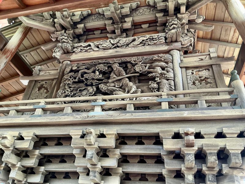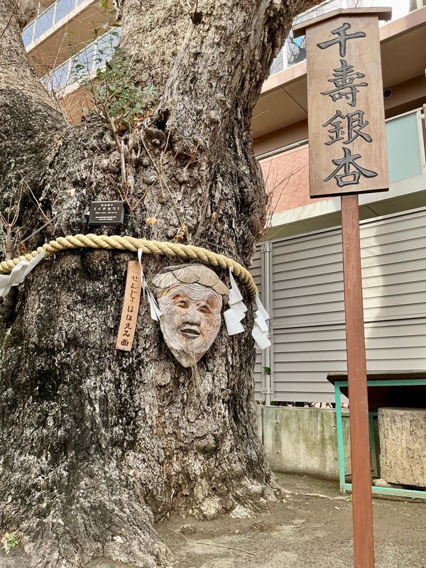 On a route suggested by Ichikawa City's tourism map is Oshikiri Inari Shrine. It's an old village shrine just 2 minutes on foot from Gyotoku Station on the Tozai Line. The shrine to an eleven-faced Kannon statue is small, but it's worth a look for two features. Next to the haiden, the worship hall, is a 1000-year-old ginkgo tree with a face! The honden, or main shrine, has high-relief carvings that are worth a look.