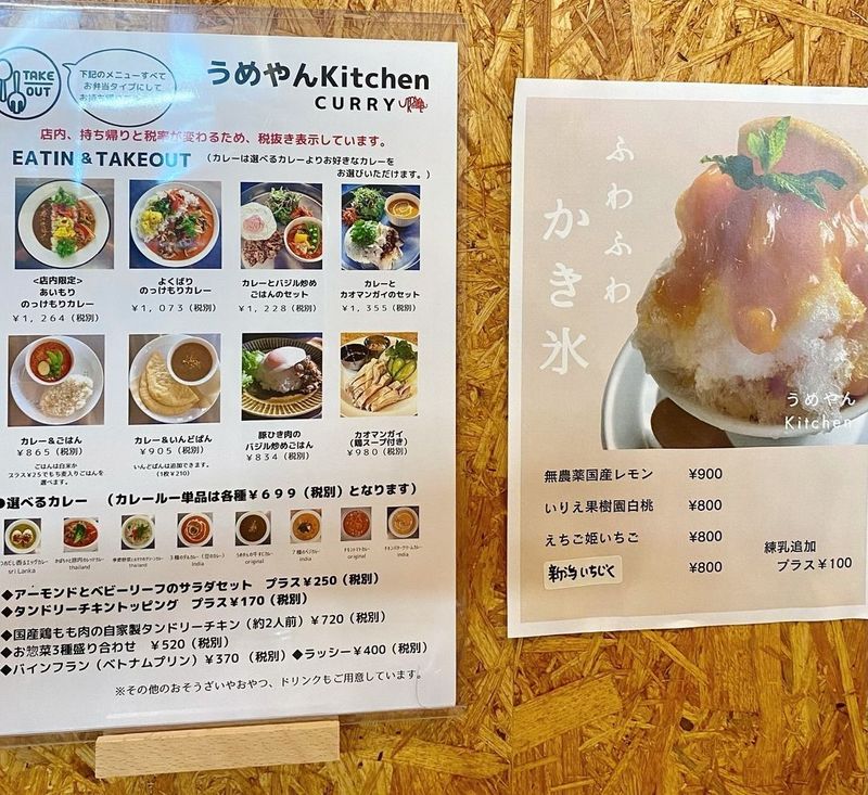 Umeyan Kitchen is a restaurant in Niigata City's Akiha ward, and the main items on their menu are Thai style dishes such as khao man gai and stir fry dishes featuring Thai basil. There are also a couple of other curries including an Indian-style one if that's more your palate's style. Dishes are priced from around 800 to 1200 yen depending on what you order, plus they have desserts like kakigori (in the warmer months) if you want to finish your meal with something sweet. There's a good amount of parking right outside the building, too, and if you don't have time to dine in they can package up your food to-go.