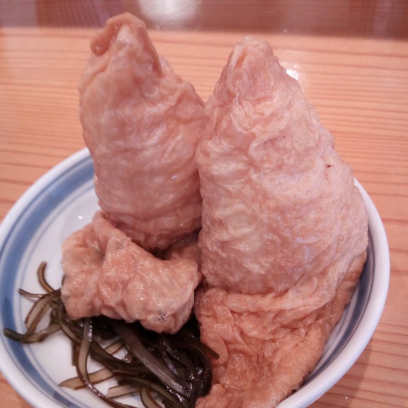 A long time ago I heard that Kurume's udon is different. Kurume Sou was recommended as the best place in town for udon, so I finally made it there. The restaurant is shokudou style and seats a lot of people despite being small. On a weekday at lunchtime it was crowded with no wait to be seated. Their basic menus are only in Japanese, but there are pictures to help guide you. The main order would be udon of course with a choice of two basic toppings: fried burdock or a fishcake. Other options are meat, meat with an egg, kitsune, etc. There are also a couple sides and the big inari zushi was recommended. The other option is onigiri. Both come as a set of two with soft kombu included. The broth is made from kombu and niboshi (dried fish) and the noodles are very soft compared to usual udon. Seasonal menus are also available, like zaru soba during summer. Prices are very reasonable - I came away full sharing one inari zushi plate and with the fried burdock udon at 610 yen total.