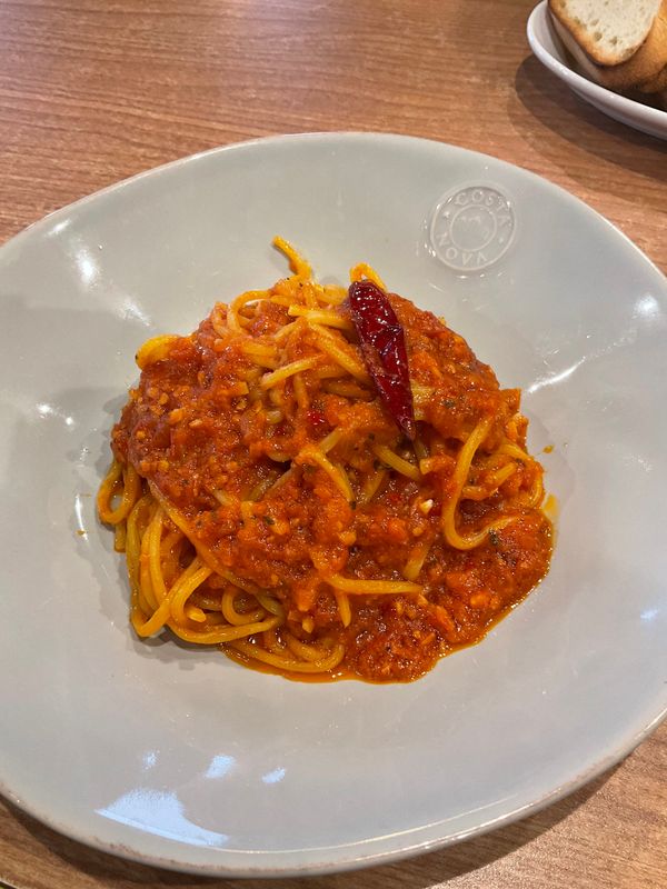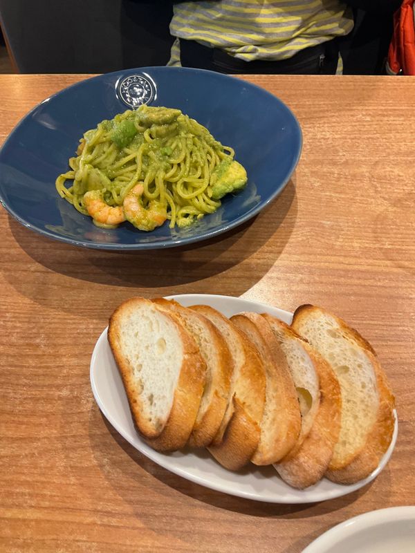 Arrived for an early dinner (~6 pm), and the restaurant was mostly empty. The waitress stepped me through the menu as it was my first time, and explained the different options (ala carte vs. set menus). I'm used to ringing a service bell on the table, but here you embrace a more western style of attentive wait staff as you are required to call them to get their attention. At the time I was there, it wasn't a problem, but I can see it being a bit more challenging during peak busy times. The restaurant has fully welcomed technology, perhaps first as an answer to the COVID epidemic, but now it seems like an excellent way to deliver food no matter what the case. The orders arrived on a digital caddy with the notice to 'press the button to send him home' once the orders have been taken. The pasta was flavorful, and the noodles chewy and delicious. I tried the 'diablo pasta' which has a variable spicy level, and I tried the first. It was mildly spicy, but at level 4, I imagine it would be terribly spicy. The portions were a little on the small side, but there is a menu option for a king-sized portion at a small additional cost. The side menus are an excellent accent to the main meal, and I tried the baguette and avocado/olive salad. Both were delicious and paired well with the tomato and pesto style pasta. The atmosphere is welcoming, but for patrons who dislike family style dining and all the buzz that comes with that, I would recommend a smaller, cozier cafe, but if you enjoy the bustle associated with dining out, then this is the place for you. I'll definitely try this restaurant again.